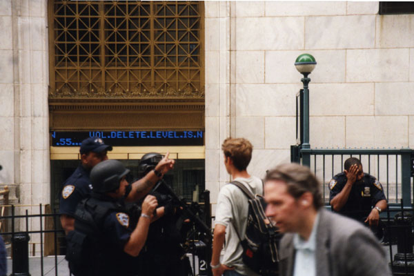 Und das muss gut bewacht werden. Absperrungen und halbautomatische Waffen, nicht ungewöhnlich in NYC.
